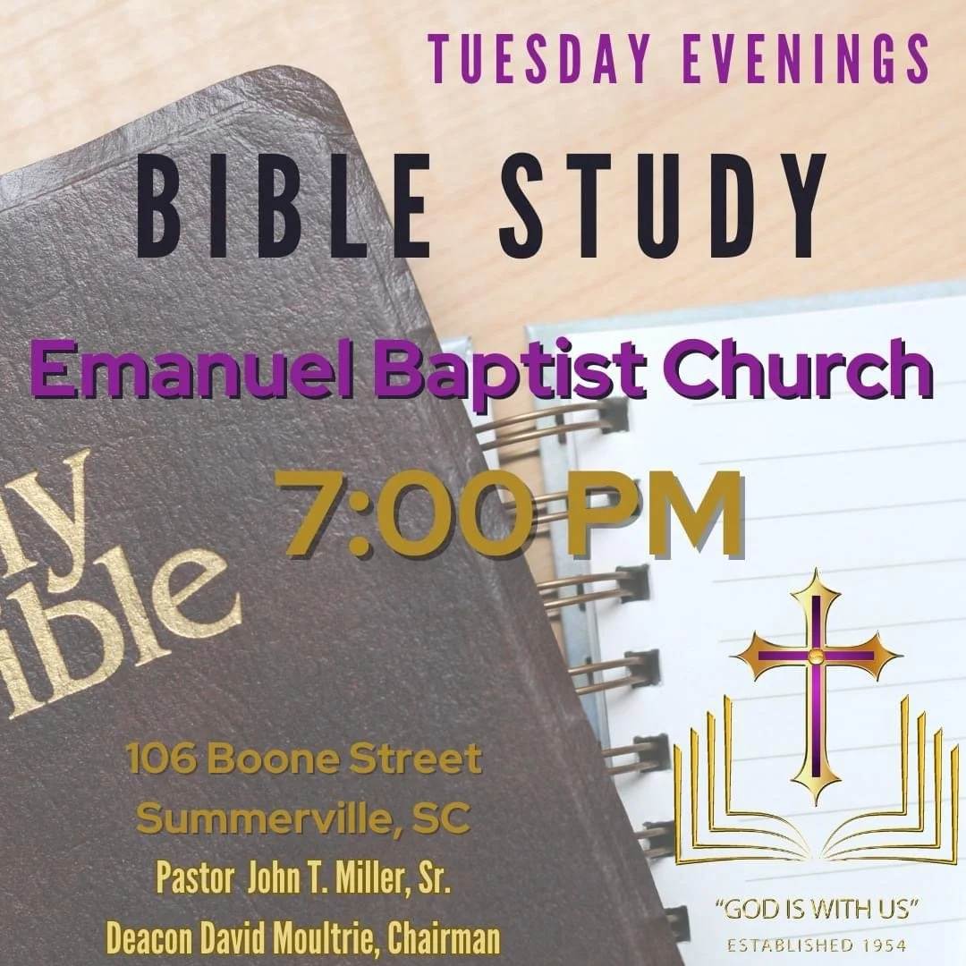 The Emanuel Baptist Church family welcomes you to join our Bible Study live streaming every Tuesday at 7:00PM.